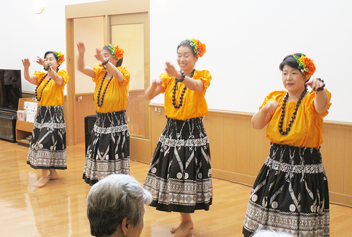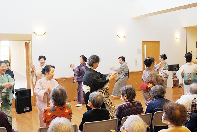 ボランティアや地域の皆さんの協力を得て,春のお花見、クリスマス会など四季を通して多種多様なイベントを年間200回以上開催しています。また、書道、絵画、トールペイントなどのクラブ・サークル活動も、専門の講師を招いて行っています。